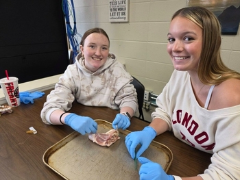 We initiated some hands-on learning with the first dissection lab using chicken leg quarters, allowing students to identify muscles, bones, cartilage, tendons, and bone marrow while reinforcing terminology and anatomical relationships.