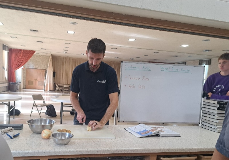 In August, Culinary Arts students were introduced to the food service industry. They have been learning about safety and sanitation, culinary basics, and knife skills. They also had their first lab activities in which students prepared banana bread and sugar cookies. In September, students will continue learning about sanitation to prepare for the industry-recognized Certified Professional Food Manager (CPFM) exam. If students pass the exam with 70% or more, they receive the CPFM certification and are eligible for dual credit through Highland. Students will also continue practicing knife skills in September through lab activities such as salsa preparation.