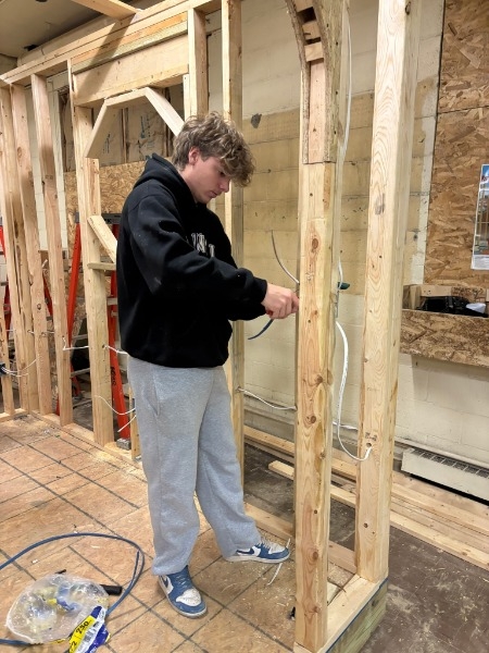 We have framed up 2 rooms inside of our shop area. One has a roof and will have a finished exterior. The other will represent an interior room. Students are currently using what they have previously learned to install electrical & plumbing into the rooms we have framed. In addition to the rooms, we have spent time learning to use the formulas on a framing square to determine rafters lengths and stair stringers. Our next units will be learning to hang & finish Sheetrock, install roofing, and install siding and soffit material.